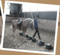 bei der Stallarbeit und die Pferdepflege.